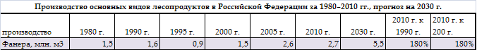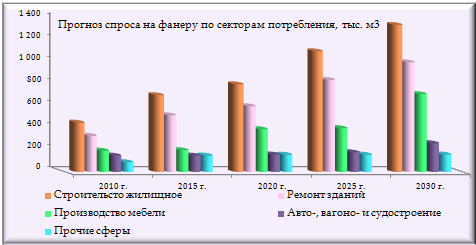 Предполагается, что к 2030 году объемы выпуска фанеры на российских предриятиях вырастут в два раза к уровню 2010 года, в то время как уровень поставок фанеры за границу за двадцать лет увеличится всего на 38 процентов. Основной сбыт фанеры (62%) к 2030 году будет осуществлен на внутреннем рынке страны. Напомним, что в 2010 году внутренний рынок потреблял почти две трети произведенной в Российской Федерации лесопродукции (61%). Остальная часть (39%) продукции поставлялась на экспорт. В 2010 году валовой доход от экспорта лесной продукции составил 9,5 млрд. долл. США, и распределился по рынкам следующим образом: европейские страны – 37%; азиатские страны – 49%; другие страны – 14%. Потребление лесной продукции на внутреннем рынке ограничено спросом государства и населения. Ограничителями спроса государства выступают бюджетные средства, выделяемые на приобретение лесной продукции для государственных нужд (оборона, образование, здравоохранение и т.п.). Спрос населения определяется его покупательной способностью, зависящей от реально получаемых доходов. По данным статистического учета, в 2010 году реальный месячный доход на душу населения составил 16 857 руб. На долю лесной продукции приходится 435 руб. в месяц, что составляет 2,6% дохода. Для Российской Федерации характерна высокая степень дифференциации доходов населения. Население с высокими доходами, которое может покупать продукцию из древесины, в основном проживает в больших городах. Доходы населения в сельской местности и небольших провинциальных городах и поселках, как правило, не позволяют сформировать устойчивый спрос на строительство деревянных домов, приобретение мебели, книг и других продуктов переработки древесины.