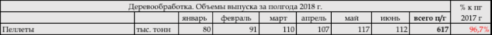 В 2017 году на пеллетном рынке был зафиксирован высокий рост объемов производства – показатели за год выросли на треть. В 2018 году стремительный рост выпуска пеллет замедлен и по итогам полугодия отмечен спад на уровне 3,3%. Всего за период с января по июнь 2018 года на российских предприятиях было изготовлено около 617 тыс. тонн топливных гранул.