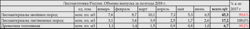 По итогам полугодия 2018 года в целом по стране было вывезено около 45,2 млн. пл. м3 хвойных лесоматериалов, что на 0,4% меньше чем год назад за аналогичный период. Напомним, что в 2017 году вывозка лесоматериалов хвойных пород сократилась на 1,1%.