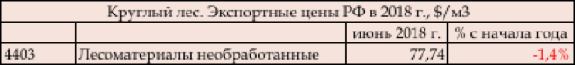 Круглый лес из России последние три года рос в цене. На протяжении полугодия 2018 года цены на российский лес имели разнонаправленную динамику. Так, в марте среднестатистические цены на поставки российского круглого леса выросли на 24%, после чего в апреле упали на 19%. В мае и в июне 2018 года цены на лес вновь упали – на 2% и 4% соответственно. В июне 2018 г. средние экспортные цены на отечественные лесоматериалы необработанные составили 77,7 $/м3. За период с начала года цены июня 2018 года на круглый лес из России упали на 1,4%. Валютная выручка от экспорта лесоматериалов необработанных из России по итогам полугодия 2018 года составила 755 млн. долл, что на 5% больше, чем год назад за такой же период. В суммарной выручке Лесной промышленности за рассматриваемый период доля стоимости реализации круглого леса на мировых рынках составляет 11%. Экспорт лесоматериалов необработанных осуществляется в основном в виде пиловочника и балансовой древесины. Минпромторг России предлагает временно ввести квоту на вывоз из РФ березового фанерного сырья: такая мера станет ключевым решением для преодоления дефицита этого виды сырья в нашей стране.