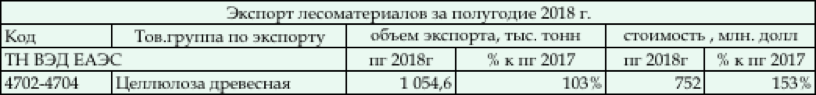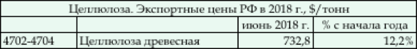 В 2017 году российская целлюлоза на мировом рынке существенно подорожала – экспортные цены выросли почти в полтора раза. В 2018 году продолжается рост цен на целлюлозу из России. Так, средние внешнеторговые цены на российскую целлюлозу в июне 2018 года в сравнении с уровнем цен на конец 2017 года выросли на 12,2%. За счет удорожания отечественной целлюлозы на мировом рынке и небольшого увеличения объема поставок в I полугодии 2018 года валютная выручка от реализации товарной целлюлозы за границей оказалась выше более чем в полтора раза по отношению к уровню I полугодия 2017 года. Всего за рассматриваемый период российские ЦБК продали целлюлозы на мировом рынке на сумму 752 млн. долл., что составило около 11% от суммарной стоимости всего экспорта лесной промышленности России. Источник: ФТС, Минпромторг Е. Дмитриева © http://www.lesonline.ru/analitic/