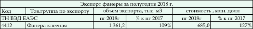 Экспорт фанеры за полгода 2018 г. вырос на 9%