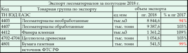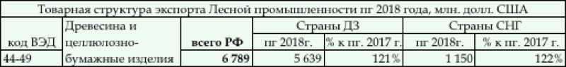 При этом почти на 9% выросли физические объемы экспорта фанеры, достигнув уровня 1361 тыс. м3; поставки товарной целлюлозы за рассматриваемый период увеличились примерно на 3%, составив 1055 тыс. тонн; объем отгруженной распиленной древесины на мировые рынки увеличился на 3%, составив по итогам полугодия 2018 г. 9387 тыс. тонн. Отметим, что разрабатываемая Стратегия развития лесного комплекса до 2030 года предусматривает ориентацию на увеличение глубокой переработки и снижение экспорта сырья. https://www.lesonline.ru/analitic/?cat_id=12&id=370999 Российский экспортный центр будет оказывать помощь компаниям, которые производят и экспортируют продукцию глубокой переработки — фанеру, газетную бумагу, целлюлозу, ДСП, различные пиломатериалы.Более половины от общей суммы выделяемых средств составит погашение 80% от затрат на транспортировку продукции. В 2018 году в список товаров, экспорт которых профинансирует бюджет, включены пеллеты.Господдержка экспорта продукции лесопромышленного комплекса может увеличиться к 2030 году в 3 раза. https://www.lesonline.ru/analitic/?cat_id=12&id=370999 Проект Федерального закона (май 2018 г.) - В статью 29 Лесного кодекса России внести изменения «6.1. До 31 декабря 2030 года заготовка деловой древесины хвойных пород (сосны, ели, пихты, кедра и лиственницы), допускается только в целях переработки на территории Российской Федерации либо использования без переработки на территории Российской Федерации». Настоящий Федеральный закон вступает в силу с 1 января 2020 года. Экспорт фанеры за полгода 2018 г. вырос на 9% Экспортная целлюлоза продолжает дорожать Экспорт круглого леса падает второй год Отгрузки распиленной древесины из России выросли на 3% Газетная бумага из России подорожала на треть