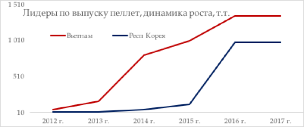 Рекордные показатели роста демонстрирует пеллетная индустрия таких стран, как Вьетнам и Республика Корея. Несмотря на то, что в 2017 году объемы выпуска пеллет в этих странах не изменились, динамика промышленного производства этой продукции за последние пять-шесть лет характеризуется высокими темпами роста. Так, например, производство пеллет во Вьетнаме за пять лет выросло в 8 раз, а в Республике Корея в 65 раз! В 2017 году выпуск пеллет во Вьетнаме составил 1,35 млн. тонн, в Республике Корея – 1 млн. тонн. При этом почти вся пеллетная продукция Вьетнам является предметом экспорта. Республика Корея не экспортирует свою пеллетную продукцию вовсе, а более того, импортировало в 2017 году дополнительно свыше 1,72 млн. тонн.В Республике Корее наблюдается дефицит экологичного топлива и 90% древесных пеллет государство импортирует из-за рубежа, в основном из стран Юго-Восточной Азии. Новый канал поставок древесных гранул (пеллет) заработает в рамках создаваемого с участием южнокорейских POSCO Daewoo и Sewon Mars завода по переработке древесных отходов. «Мы заинтересованы в том, чтобы использовать российскую древесину для производства экологичного топлива и намерены построить специальный завод, чтобы производить и затем импортировать пеллеты в Республику Корею», – заявил во Владивостоке президент POSCO Daewoo. Инвесторы рассчитывают реализовать проект в рамках территории опережающего развития «Надеждинская» и уже приступили к оформлению соответствующей заявки. Мощность нового предприятия составит около 100 тыс. тонн в год. При производстве будут использоваться обрезные пиломатериалы. Сами же пеллеты хорошо перевозятся в контейнерах.