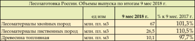 Лесозаготовка России. Итоги 9 мес. 2018 г.
