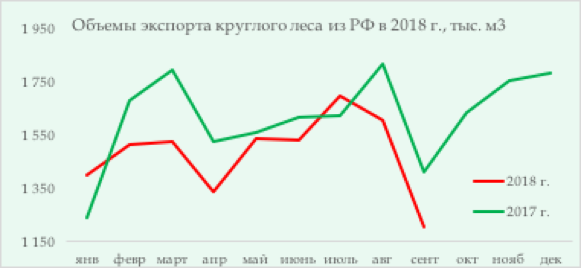 Необходимо учитывать, что за последние десять лет наметилась стойкая тенденция на снижение вывоза необработанного леса и увеличение экспорта пиломатериалов и другой продукции ЛПК. Тенденции экспорта круглого леса за последние десять лет ознаменовались существенным снижением уровня поставок. Начиная с 2007 года, некогда высокие объемы экспорта круглого леса из России ежегодно падали. В результате экспорт круглого леса в натуральном исчислении за последние десять лет сократился более чем в 2,5 раза. Столь внушительному снижению экспорта леса способствовала тарифная таможенная политика страны, которая была направлена на увеличение пошлин на вывоз круглого леса при стимулировании экспорта обработанной древесины. Однако, теневая экономика на экспортном рынке кругляка, незаконные рубки, отсутствие качественного лесовосстановления, а также стремление развернуть российский экспорт в направлении товаров более глубокой переработки, всё это стало последнее время предметом обсуждения, как на уровне местных органов власти, так и в Правительстве страны. Так в 2018 году на уровне Правительства выходят сразу несколько важных документов, регламентирующих оборот экспортных необработанных лесоматериалов. Одним из важнейших событий на экспортном рынке круглого леса стали изменения, которые в мае 2018 года были внесены в Лесной кодекс России. Согласно этому федеральному закону, начиная с 2020 года в течение десяти лет будет запрещен на вывоз необработанных лесоматериалов хвойных пород древесины из страны, что «позволит разрешить проблему лесовосстановления», отмечено в документе. Отметим, что основным импортером российского круглого леса хвойных пород выступает Китай. До осуществления данного решения остается более двух лет. Однако, уже сейчас можно отметить, что в экспорте круглого леса наметилась тенденция – объемы отгрузок в целом по стране падают второй год подряд. Напомним, что в 2017 году экспорт круглого леса просел на 3%. В 2018 году спад продолжился, объемы поставок круглого леса по итогам 9-ти месяцев 2018 года упали на 6,4% по отношению к уровню аналогичного периода предыдущего года.