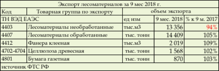 Товарные экспортные потоки лесной отрасли. 9 мес. 2018 г.