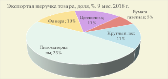 Стоимость экспорта лесной промышленности. 9 мес. 2018 г.