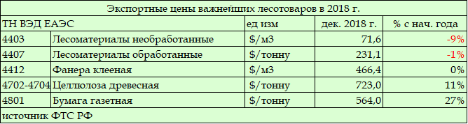 Характеризуя динамику экспортных поставок лесной индустрии России в 2018 году, отметим, что по состоянию на декабрь 2018 года за период с начала года увеличение внешнеторговых цен зафиксировано по таким ведущим экспортным товарным группам отрасли, как газетная бумага и целлюлоза.
