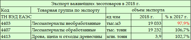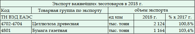 Товарные потоки экспортных лесотоваров в 2018 г.