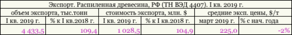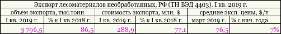 Экспорт лесной отрасли в 1 кв. 2019 г.