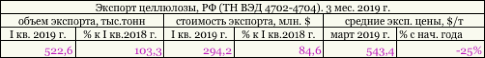 По состоянию на март 2019 года внешнеторговые цены на отечественную целлюлозу составили в среднем 543 $/м3, за период с начала года цены упали на 25% Подробнее см. Инфографика https://www.lesonline.ru/news/?cat_id=25&id=379378 https://www.lesonline.ru/news/?cat_id=25&id=379379 Источник ФТС