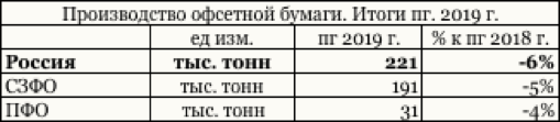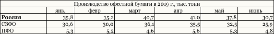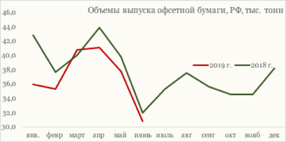 Динамика выпуска офсетной бумаги по итогам полугодия 2019 г.