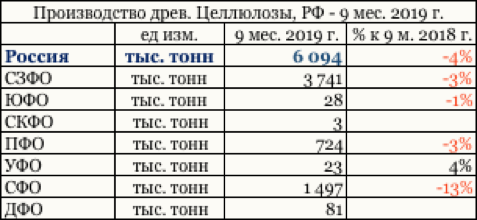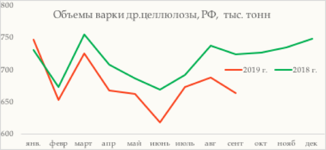Производство целлюлозы, РФ. 9 мес. 2019 г.
