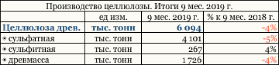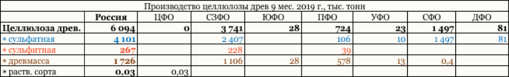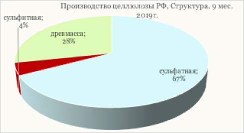 Виды древесной целлюлозы, производство РФ, 9 мес. 2019 г.