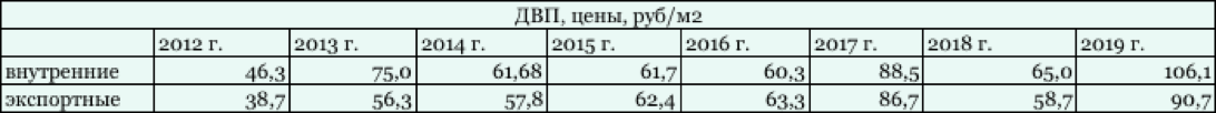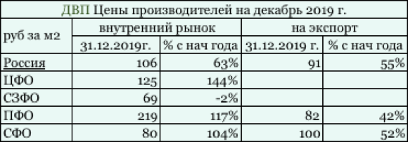 Цены производителей плит ДВП в целом по России (указаны среднестатистические цены по состоянию на декабрь 2019 г. и изменение цен за период с начала года)