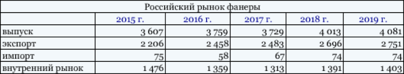 Экспортно-ориентированное производство фанеры в России является наиболее рентабельным и интенсивно развивающимся сектором деревообрабатывающей отрасли страны. На фанерном рынке России сегодня работают около 70 предприятий проектной мощностью около 4 млн. кубометров фанеры. Производством фанеры охвачены практически все федеральные округа России. Наиболее ёмкий выпуск фанеры сосредоточен в СЗФО. Экспорт российской фанеры сильно сегментирован не только географически, но и с точки зрения конечного применения продукции. В России наибольшее распространение получило производство березовой фанеры, что обусловлено особенностями состава лесов. Березовая квадратная фанера активно используется за рубежом в мебельной промышленности, а также в производстве ящиков для продукции машиностроения. Большеформатная фанера повышенной водостойкости, как березовая, так и хвойная, успешно применяется в строительстве. Использованы: информация Росстата, ФТС, ФАО, отраслевые новости, информация Минэкономразвития РФ Е. Дмитриева