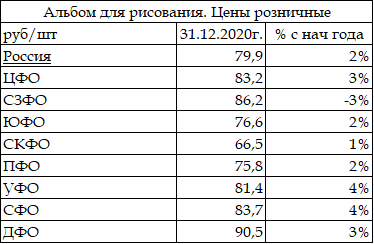 ФО на Альбомы для рисования отмечен рост потребительских цен