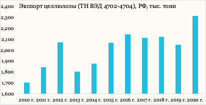 Основным импортером сульфатной целлюлозы из России, причем с большим отрывом от других стран, выступает Китай. При этом практически все поставки древесной целлюлозы в Поднебесную уходят из Иркутской области. Крупнейший российский производитель и экспортер целлюлозы ГК «Илим» поставляет на российский рынок только порядка 13% всей целлюлозы, предназначенной для реализации (большая доля произведенной целлюлозы потребляется внутри компании для выпуска бумаги, картона и др.), тогда как 87% продукции идет на экспорт. Важно отметить, что последние годы российские ЦБК экспортируют целлюлозу в КНР в условиях высокой конкуренции поставщиков эвкалиптовой целлюлозы из Бразилии, Чили и Парагвая. По прогнозам в 2019-2023 г.г. ожидается дальнейший рост экспорта нарастающими темпами 1,3-4,2% в год. Так, в планах ГК «Илим», учитывая растущий спрос в Китае, наращивать экспорт хвойной целлюлозы.