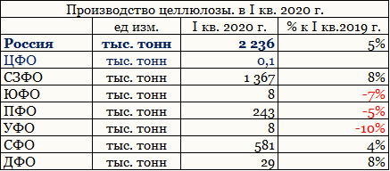Таблица. Региональный выпуск древесной целлюлозы в РФ по