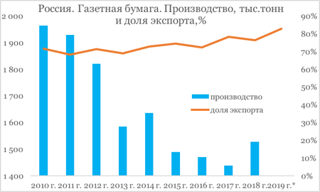 На экспорт уходит 83% от российского выпуска газетной бумаги