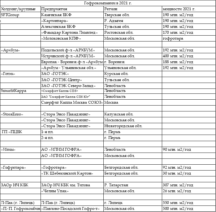 гофрокартона – в 2019 г совместно с новой площадкой в г. Клин