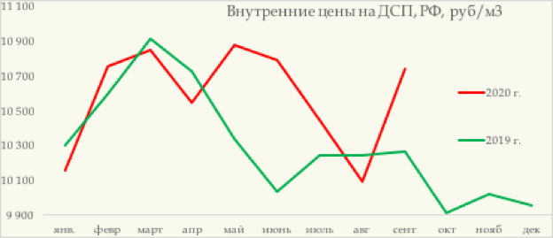 Напомним, что в 2019 г. цены внутреннего рынка на ДСП выросли