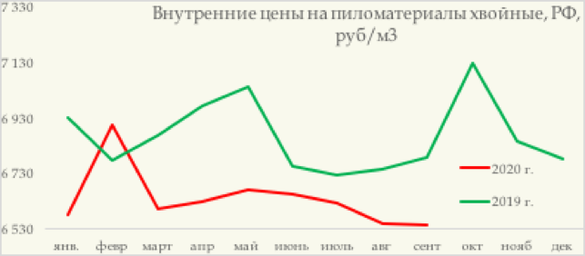 За девять месяцев 2020 г. цены на пиломатериалы хвойных пород