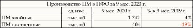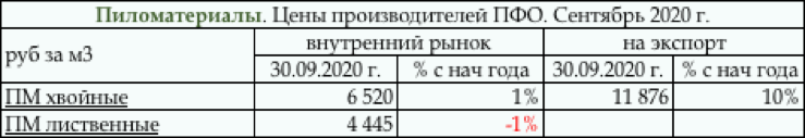 См. Инфографика Производство лиственных пиломатериалов в ПФО: По выпуску лиственных пиломатериалов Приволжский ФО занимает первое место в масштабах страны. В настоящее время на долю ПФО приходится 27% всего выпуска лиственных пиломатериалов, производимых в России. Производство лиственных ПМ в ПФО последнее время росло. Так в 2019 г. объемы выпуска данной продукции увеличились на 8%. В 2020 г. зафиксирован спад производства лиственных ПМ - по итогам 9 мес. 2020 г. объемы производства лиственных ПМ в ПФО упали на 19% относительно аналогичного периода предыдущего года. Всего в ПФО за истекший период было выпущено около 404 тыс. кубометров пиломатериалов из лиственных пород древесины. Цены предприятий ПФО на пиломатериалы: Отпускные цены производителей ПФО на хвойные ПМ, реализованные на внутреннем рынке в начале октября 2020 г. установились на отметке 6520 руб. за м3, рост цен с начала года составил 1%. Напомним, что в 2019 г. цены потребительского рынка производителей ПФО упали на 12%. По экспортным ПМ из хвойной древесины за девять мес. 2020 г. цены производителей данного региона выросли на 10%, составив на начало октября 2020 г. внешнеторговые цены соответствовали уровню 11876 руб. за кубометр. Таблица. Цены производителей ПФО на ПМ. Внутренний рынок и экспорт; на начало окт. 2020 г.