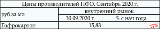 Приволжский ФО выступает вторым регионом по объемам выпуска гофрокартона с долей рынка 33%. За 9 мес. 2020 г. производство гофрированного картона (в рулонах или листах) в ПФО выросло на 7% относительно такого же периода предыдущего года, составив 762,6 млн. м2. Напомним, что в 2019 г. по данному региону был зафиксирован незначительный рост выпуска, который составил 1,4%. Таблица. Средние цены производителей ПФО на гофрокартон