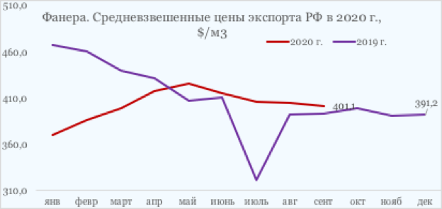 экспортного рынка фанеры по ценовому фактору в 2020 г. стало