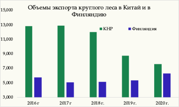 Динамику объемов экспорта круглого леса см. «Инфографика»: https://www.lesonline.ru/news/?cat_id=25&n=379372 Динамику внешнеторговых цен см. «Инфографика»: https://www.lesonline.ru/news/?cat_id=25&n=379373 Ведущим импортером российского круглого леса традиционно выступает Китай, доля рынка в 2020 г. 49%. По итогам 2020 г. экспорт круглого леса в Поднебесную в натуральном выражении сократился на 13% относительно уровня предыдущего года, составив 7563 тыс. пл. кубометров необработанной древесины. Основу экспорта составляет пиловочное сырье. Средневзвешенные экспортные цены на поставки круглого леса в КНР в 2020 г. соответствовали уровню 89,8 $/м3., изменений по ценам за период с начала года не отмечео. Напомним, что в предыдущем году поставки круглого леса в Китай упали на 27%. Вторым значимым импортером российской необработанной древесины является Финляндия. Поставки леса в Суоми в 2020 г. выросли на 19% до 6310 тыс. пл. м3. Наибольший объём декларирования необработанной древесины в Финляндию пришёлся на таможенные посты Санкт-Петербурга и Вологодской области. В Финляндию в основном вывозят балансовую березовую древесину. Средневзвешенные экспортные цены на поставки круглого леса в Финляндию в 2020 г. соответствовали уровню 43 $/м3, с начала года цены упали на 6%. Напомним, что в предыдущем году поставки круглого леса в Финляндию увеличились на 4%, цены упали на 9%. Третьим в списке ведущих импортеров по объемам экспорта круглого леса в 2019 г. выступает Казахстан, доля рынка 3%. В 2020 г. в Казахстан было отгружено круглого леса в натуральном выражении на 18% меньше, нежели год назад, объем составил 518 тыс. пл. м3. Средневзвешенные экспортные цены на поставки круглого леса в Казахстан в 2020 г. соответствовали уровню 27 $/м3, за год цены выросли на 1%. Напомним, что в предыдущем году поставки круглого леса в Казахстан выросли существенно - рост составил 30%. Швеция занимает четвертое место в списке импортеров российского круглого леса. Отгрузки необработанной древесины в эту страну упали на 9%, составив 479 тыс. пл. м3. Средневзвешенные экспортные цены на поставки круглого леса в Швецию в 2020 г. соответствовали уровню 41 $/м3, цены в среднем упали на 11%. Отметим, что ранее за Швецией закрепилось третье место в ранжированном списке по объемам поставок российского круглого леса. Однако в 2019 г. отгрузки необработанной древесины в эту страну упали на 15%. Предыдущие годы пятерку ведущих импортеров круглого леса из России замыкала Япония, однако в 2020 г. объем ввоза круглой древесиный в эту страну сократился на 54% до 63 тыс м3. Напомним, что в предыдущем году поставки круглого леса в Японию упали на 18%. Узбекистан в 2020 г. существенно увеличил объем закупок круглого леса из России, за год в эту страну было вывезено 172 тыс. кубометров необработанного леса, рост экспорта 166%. Значительно увеличились поставки круглого леса по итогам 2020 г. также в такие страны, как Киргизия (рост вдвое), Эстония (рост 86%). В тоже время Украина снизила объем закупок необработанной древесины из России на 13%, Япония сократила импорт на 54%, а в Германию было отгружено на 36% меньше, чем год назад. Среди стран-импортеров, закупивших в 2020 г. не столь выскоие объемы необработанной древесины у российских лесоэкспортеров, назовем такие, как Румыния, Латвия, Эстония, Беларусь, Словакия и Литва. Важно напомнить, что в 2019 г. экспортные поставки круглого леса в Литву сократились бо