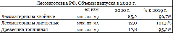 Таблица. Объемы лесозаготовительных работ в России по итогам 2020 г.