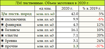 Таблица. Структура вывозки лиственных лесоматериалов - 2020 г.