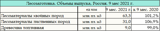 Лесозаготовка РФ, 9 мес. 2021 г.