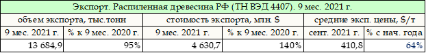 Динамику объемов отгруженной продукции см. «Инфографика»: https://www.lesonline.ru/news/?cat_id=25&n=379374 *Экспорт пиломатериалов (код ТН ВЭД 4407) в классификации ФТС: «лесоматериалы, полученные распиловкой или расщеплением вдоль, строганием или лущением, обработанные или не обработанные строганием, шлифованием, имеющие или не имеющие торцевые соединения, толщиной более 6 мм». Используется терминология – обработанные лесоматериалы (ФТС) – распиленная древесина/пиломатериалы (кроме профилированных). Единицы измерения – тыс. тонн. Таблица. Экспорт обработанных лесоматериалов за 9 мес. 2021 г.
