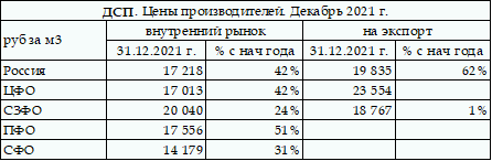 рост замедлился. В целом по России ДСП в декабре 2021 г.