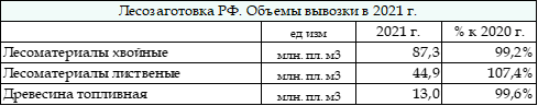 Таблица. Объемы лесозаготовительных работ в России по итогам 2021 г.