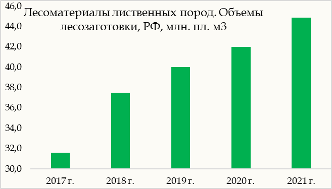 березы и осины вырос до 44,9 млн. пл. кубометров, объемы