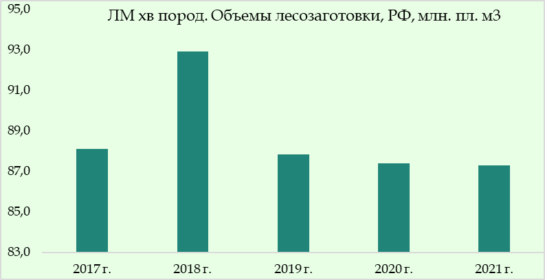 стране в 2021 г. объем вывозки круглых лесоматериалов из