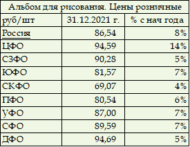 В Центральном ФО рост цен на Альбомы для рисования составил