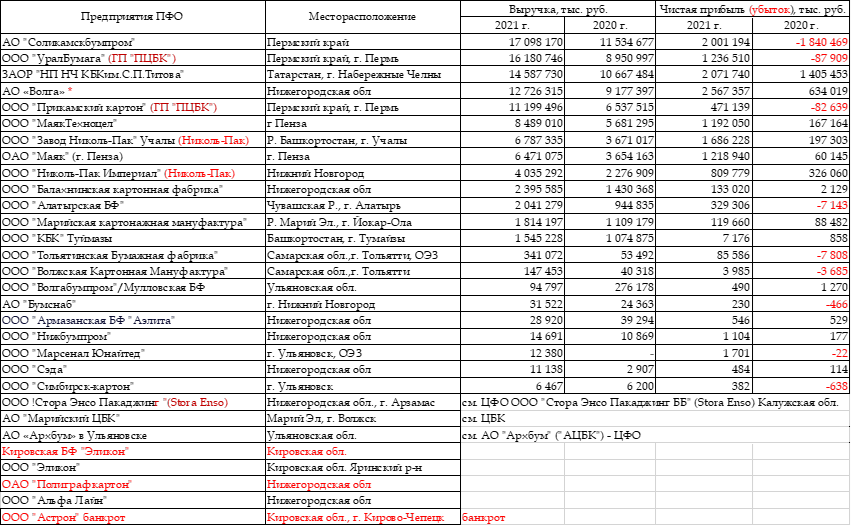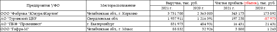 Гофропредприятия ПФО и УФО. Финансовые итоги 2021г.