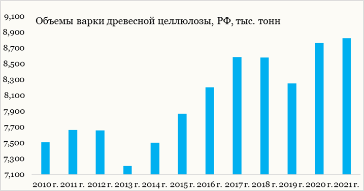 древесной целлюлозы в России по итогам 2021 г. выросло