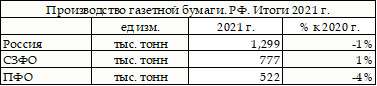 Всего за 2021 г. производители газетной бумаги СЗФО
