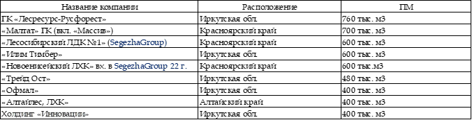 выпуск ДСП), «Березка», «Э-Лес», «Томская ПК»,