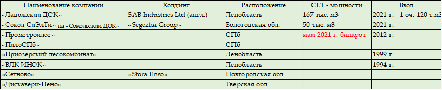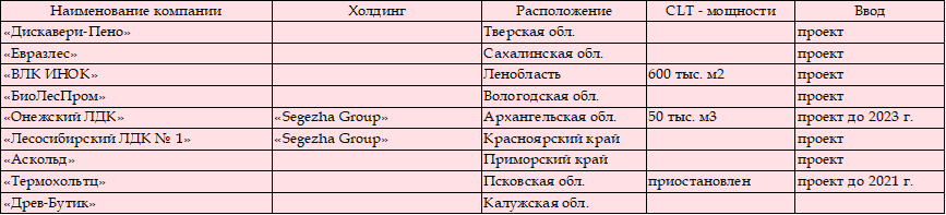 Таблица. 2. Проекты на рынке CLT-панелей по состоянию на