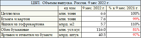 Таблица. Итоги выпуска основной продукции ЦБП, 9 мес. 2022