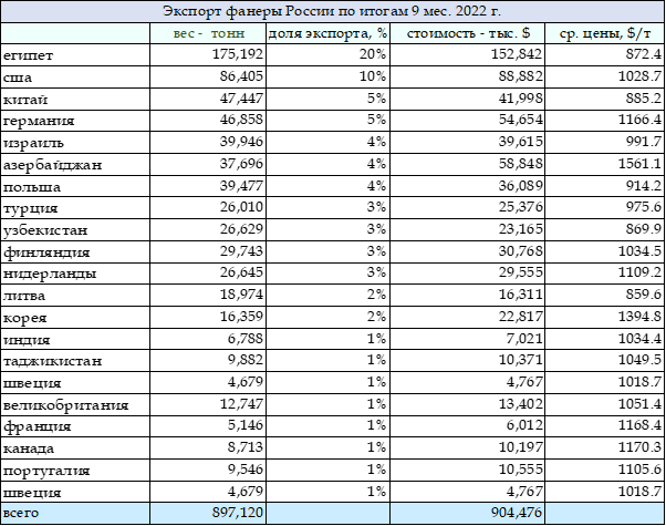 фанерного кряжа на открытом рынке. По итогам 9-ти мес. 2022