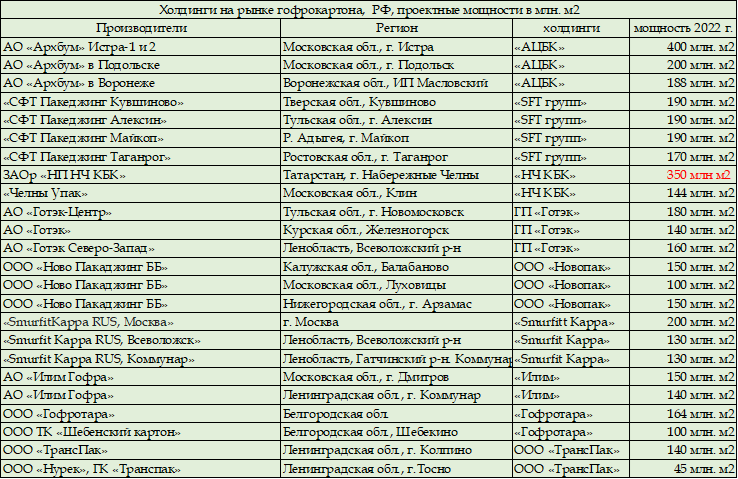 млн м2 гофроупаковки в год. Заводами по производству упаковки