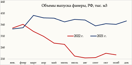 производства российской фанеры в 2022 г. снизился